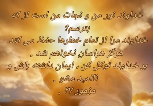 خداوند نور من و نجات من است ، از که بترسم ؟ خداوند مرا از تمام خطرها حفظ می کند ، هرگز هراسان نخواهم شد .