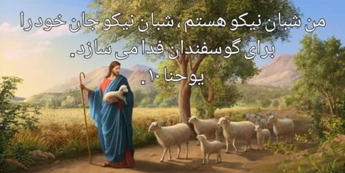 من شبان نیکو هستم ، شبان نیکو جان خود را برای گوسفندان فدا می سازد . اما مزدوری که شبان نیست و گوسفندان به او تعلق ندارند وقتی ببیند که گرگ می آید ، گوسفندان را می گذارد و فرار می کند . آنگاه گرگ به گله حمله می کند و گوسفندان را پراکنده می سازد . او می گریزد چون مزدور است و به فکر گوسفندان نیست . من شبان نیکو هستم ، من گوسفندان خود را می شناسم و آنها هم مرا می شناسند . همان طور که پدر مرا می شناسد ، من هم پدر را می شناسم و جان خود را در راه گوسفندان فدا می سازم . من گوسفندان دیگری هم دارم که از این گله نیستند ، باید آنها را نیز بیاورم ،آنها صدای مرا خواهند شنید و یک گله و یک شبان خواهند شد.